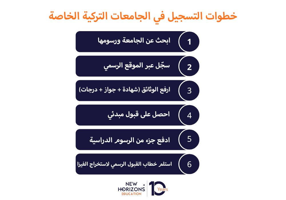عملية التسجيل في الجامعات التركية الخاصة سهلة، ولا تتطلب سوى بعض الخطوات كما الآتي: