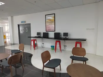 يضم الحرم الجامعي كافيتريا تقدم وجبات متنوعة ماليزية وعربية بأسعار رمزية ومناسبة للطلاب.